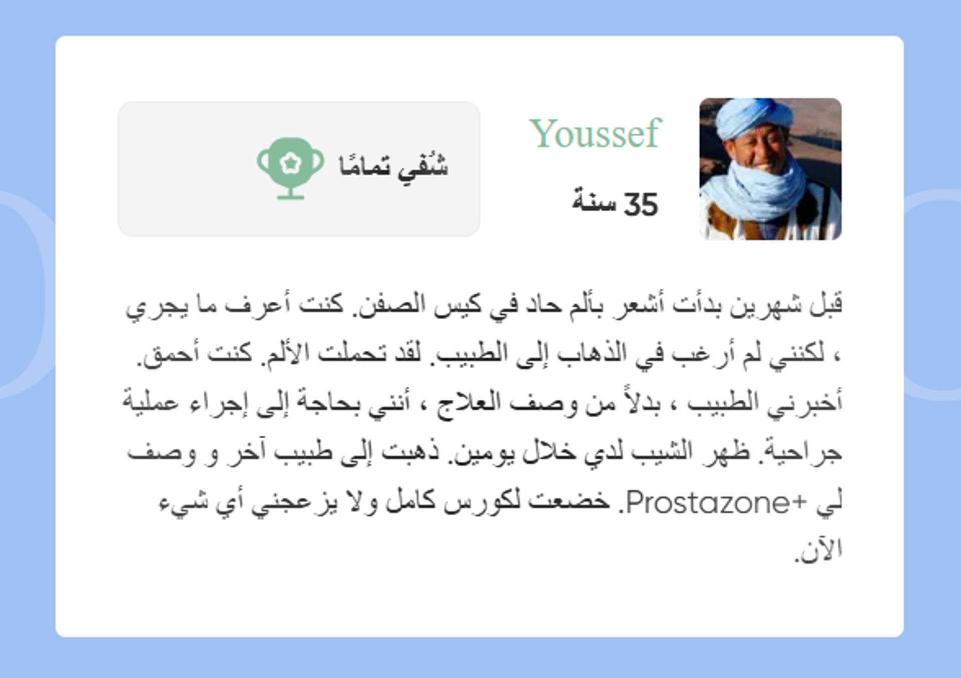 منتج Prostazone يسمح للمرضى بأن يعيشوا أسلوب حياة نشط